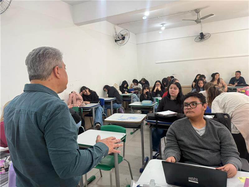 Nos dias 23 e 24 de setembro de 2025, o Pró-Reitor Henrique Barros e o Coordenador Comercial Alexandre de Lima deram continuidade às ações do Projeto Vá+Além, que tem percorrido escolas de Bauru com o objetivo de incentivar os alunos do Ensino Médio a compareceram ao Exame Nacional do Ensino Médio (ENEM).