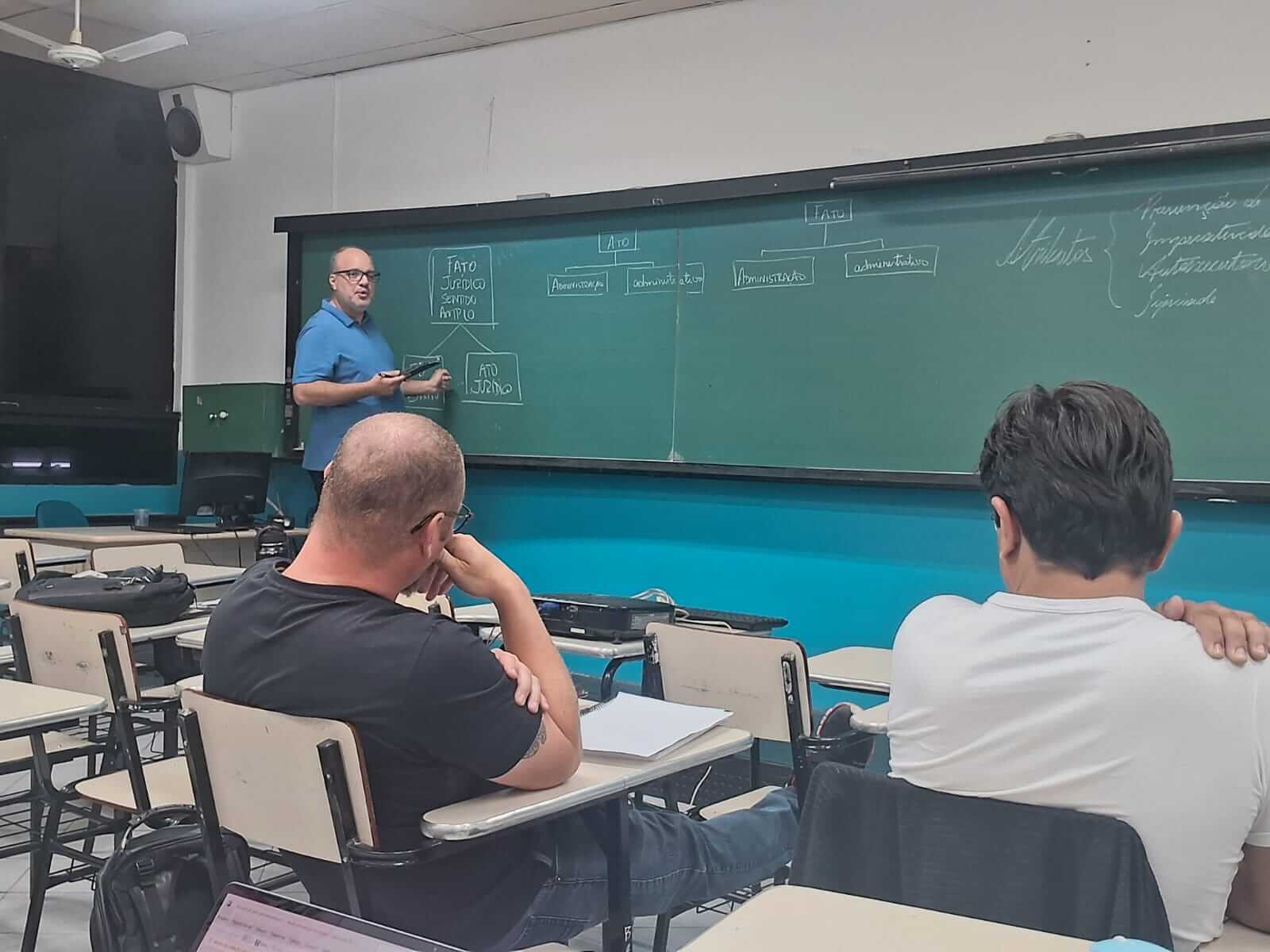 A temática do encontro foi “Fatos Administrativos e Atos Administrativos”, abordada por meio da metodologia ativa de sala invertida, que estimula a autonomia, o protagonismo e a participação dos estudantes no processo de aprendizagem.